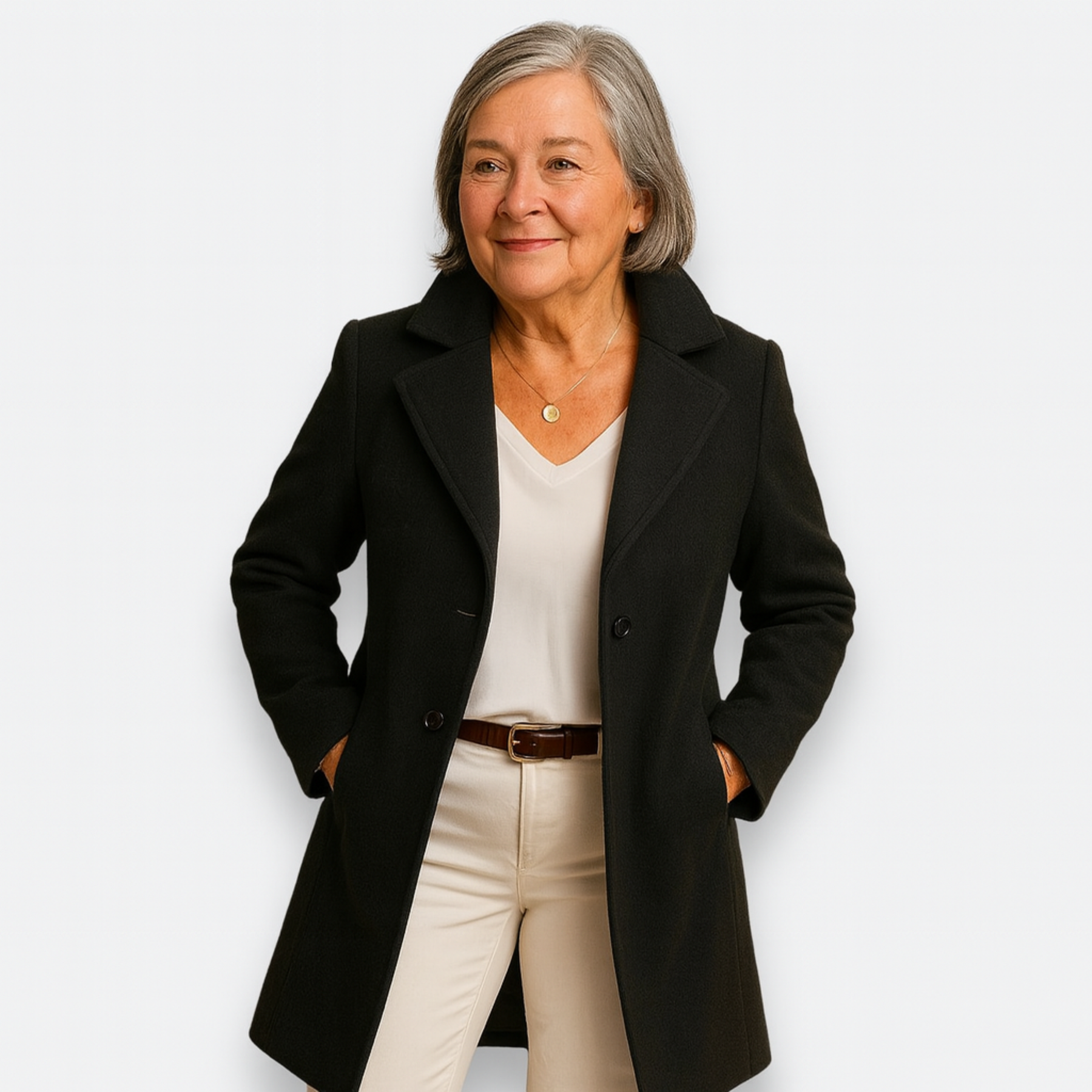 Le manteau HÉLÈNE™ incarne la simplicité raffinée que recherchent tant de femmes au Québec. Conçu pour offrir à la fois confort, chaleur et une allure élégante, il met délicatement la silhouette en valeur grâce à sa coupe féminine et structurée.